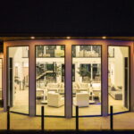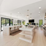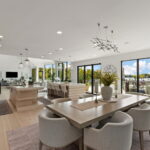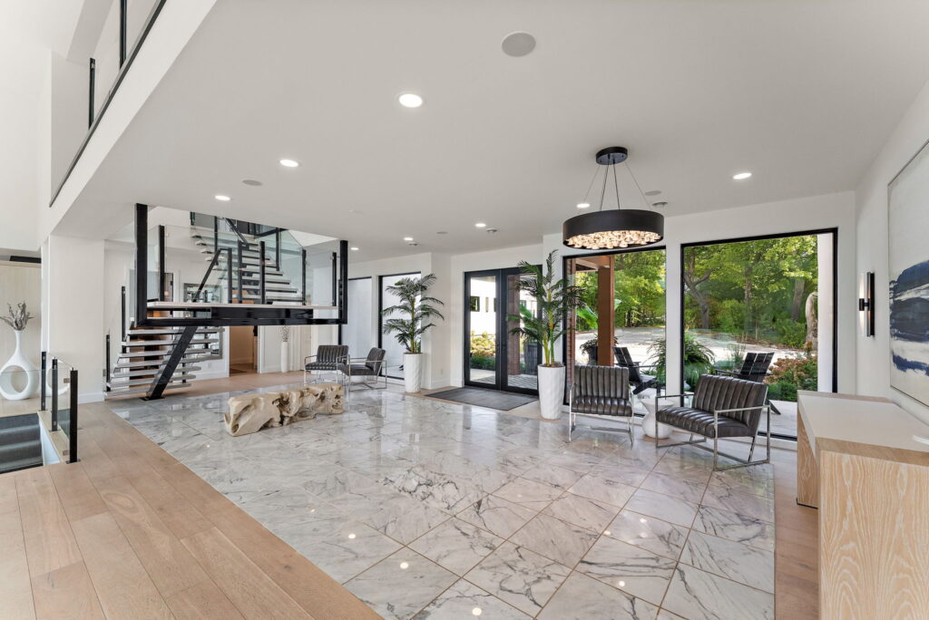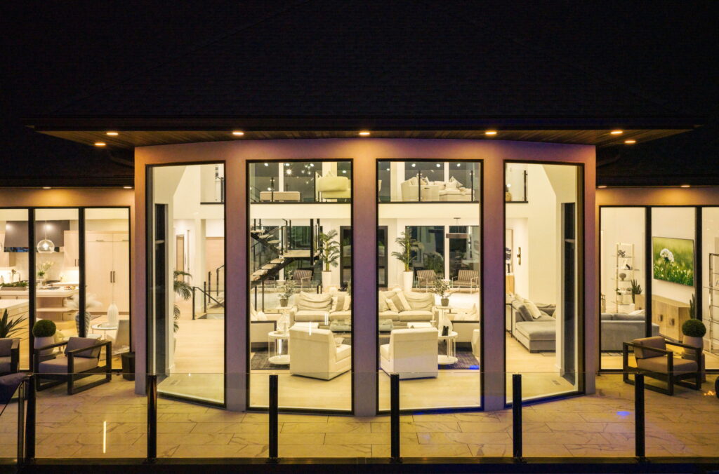 Indoor-outdoor flow with sliding glass walls opening to terraces and patios