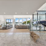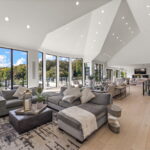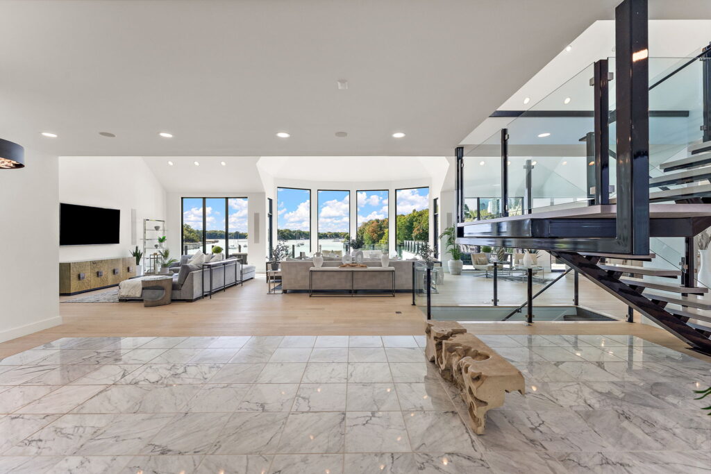 Soaring ceilings and floor-to-ceiling lake-view windows