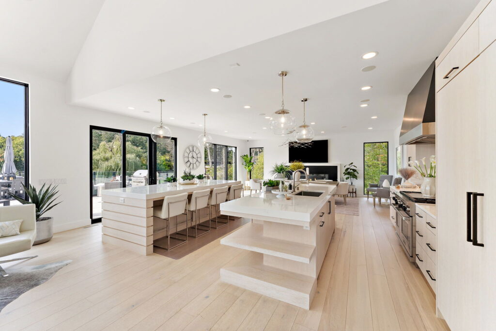 Chef’s kitchen with Sub-Zero refrigerator & wine storage, Wolf range, Cambria countertops, and a full prep kitchen